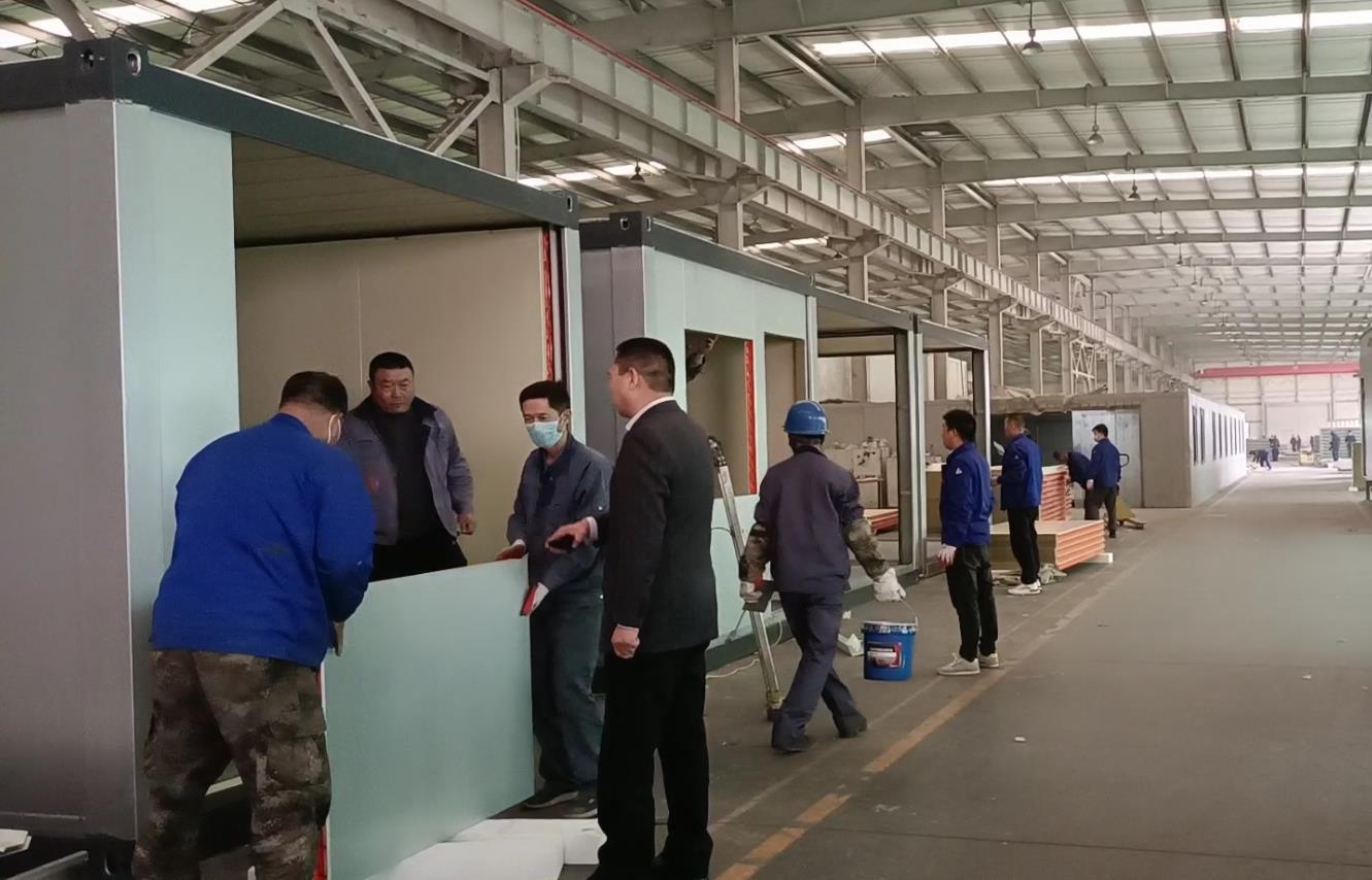 10月30日,绿丰科技公司接到了卫辉市疫情防控指挥部3天内交付100套防疫隔离方舱订单任务。针对时间紧、任务重、标准高的特点,公司李须汉董事长当即召开专题会议,提出了拿出天丰的血性和担当,科学组织,精心操作,奋力拼搏,变不可能的可能,技术、生产、供应、施工各部门通力合作,确保高质量完成任务的总要求。技术部门当天连夜加班深化图纸,下发料单及物料采购计划,项目经理奔赴现场进行勘察对接。供应团队加班加点积极协调组织配套材料,面对因疫情造成的困难,供应部门一边协调供应商备货,一边协调物流运输开具各项证明以便通行。