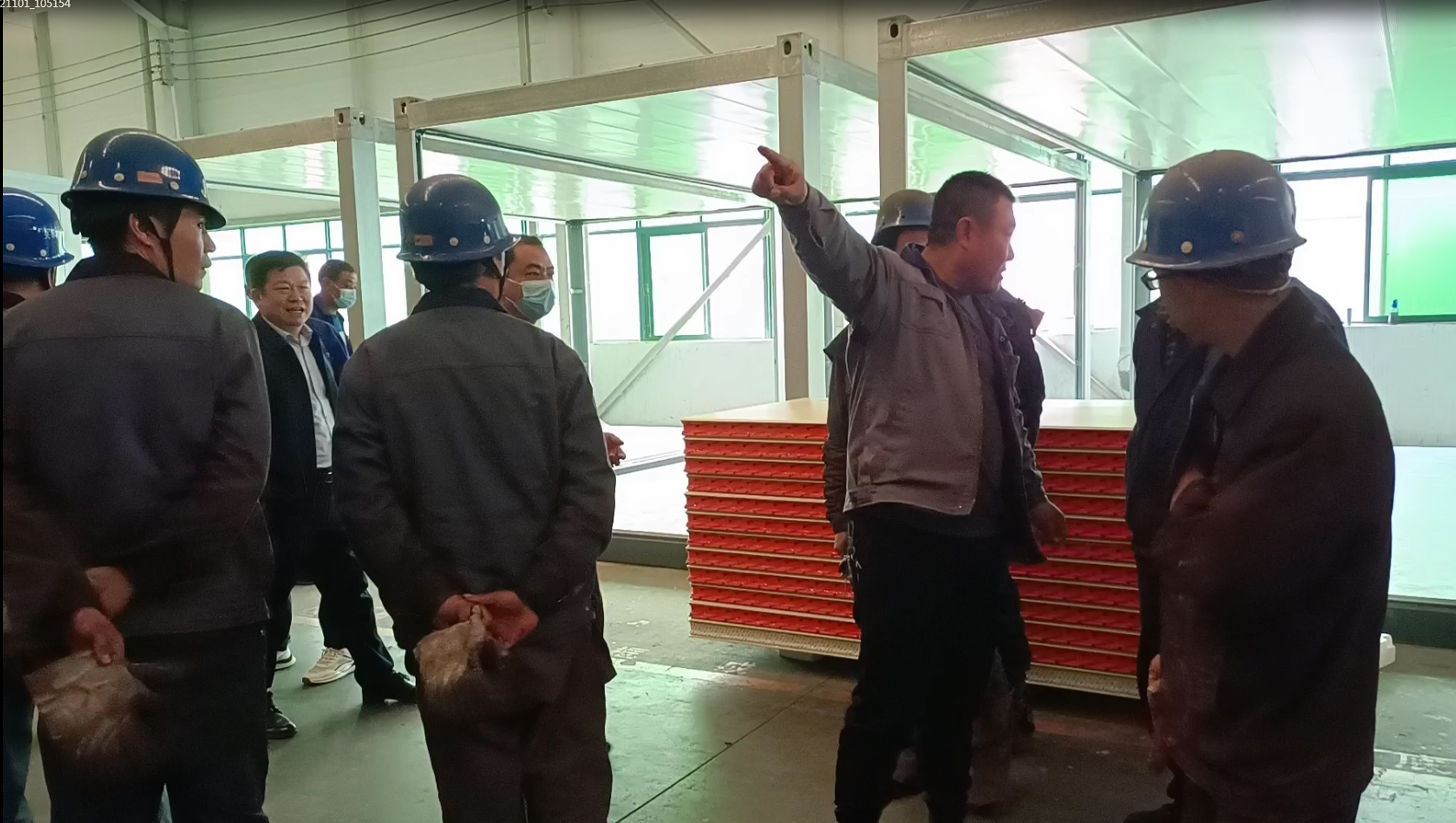 决策下达后,钢构和集术的30名技术骨干员工很快到达生产现场,绿丰科技的管理人员也闻讯放下手头工作到车间帮忙抬板,搬运物资。绿丰科技支部副书记、生产副总李公壮勇挑重担,谋定而动,动员党员先行,做好表率。生产团队优化组装场地,各个部门齐心协力加快生产进度。保障生产,200多名员工吃住在厂区,睡沙发,睡车间,打地铺。