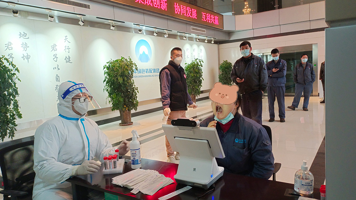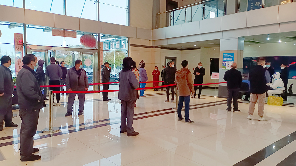 在生产车间通宵忙碌的同时,集团综合办在集团疫情指挥领导小组组长李公杰指挥下高效组织、精心协调开展厂区员工核酸采样工作,全力保障员工身体健康,确保核酸检测结果“零感染”,为全力生产保驾护航。公司领导为驻厂员工安排住宿并安排工作人员紧急购置了棉被一百多套送到员工宿舍,给驻厂员工送了温暖,体现了集团对员工的关怀。食堂工作人员一日三餐把饭菜送到生产现场。